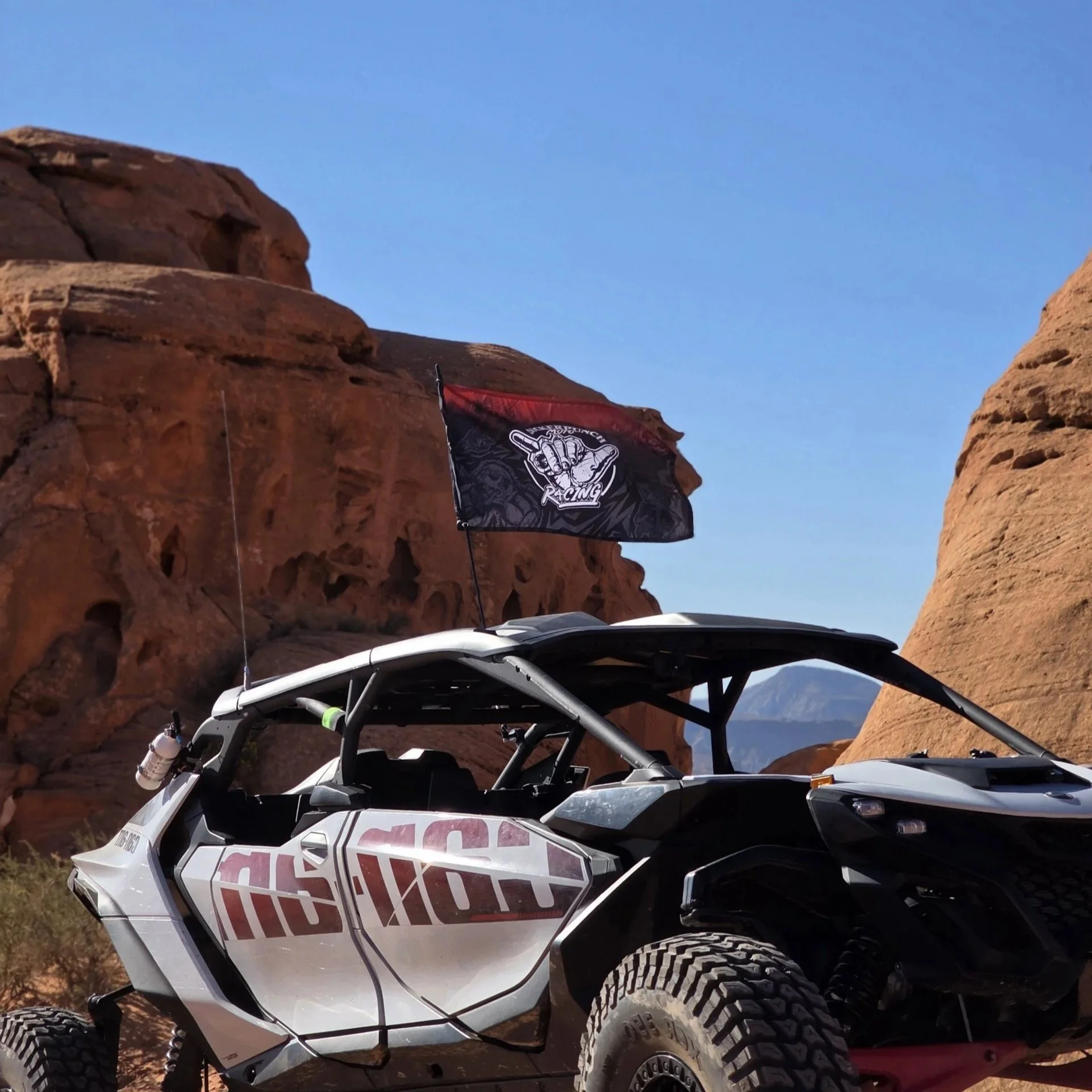 Same quality without compromise as our big flags, these grommeted 12”x18” nylon dune flags will look fantastic and show everybody exactly who’s comin’!